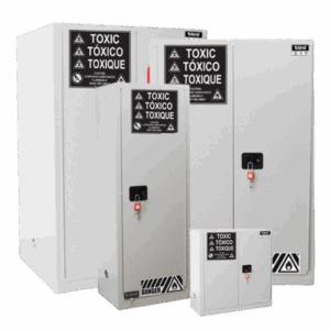 Corrosive safety cabinets are used for storing acids, bases, hydrogen peroxide, bleach, and other corrosive liquids. These cabinets are equipped with flame retardant trays to contain leaks and prevent accidents.